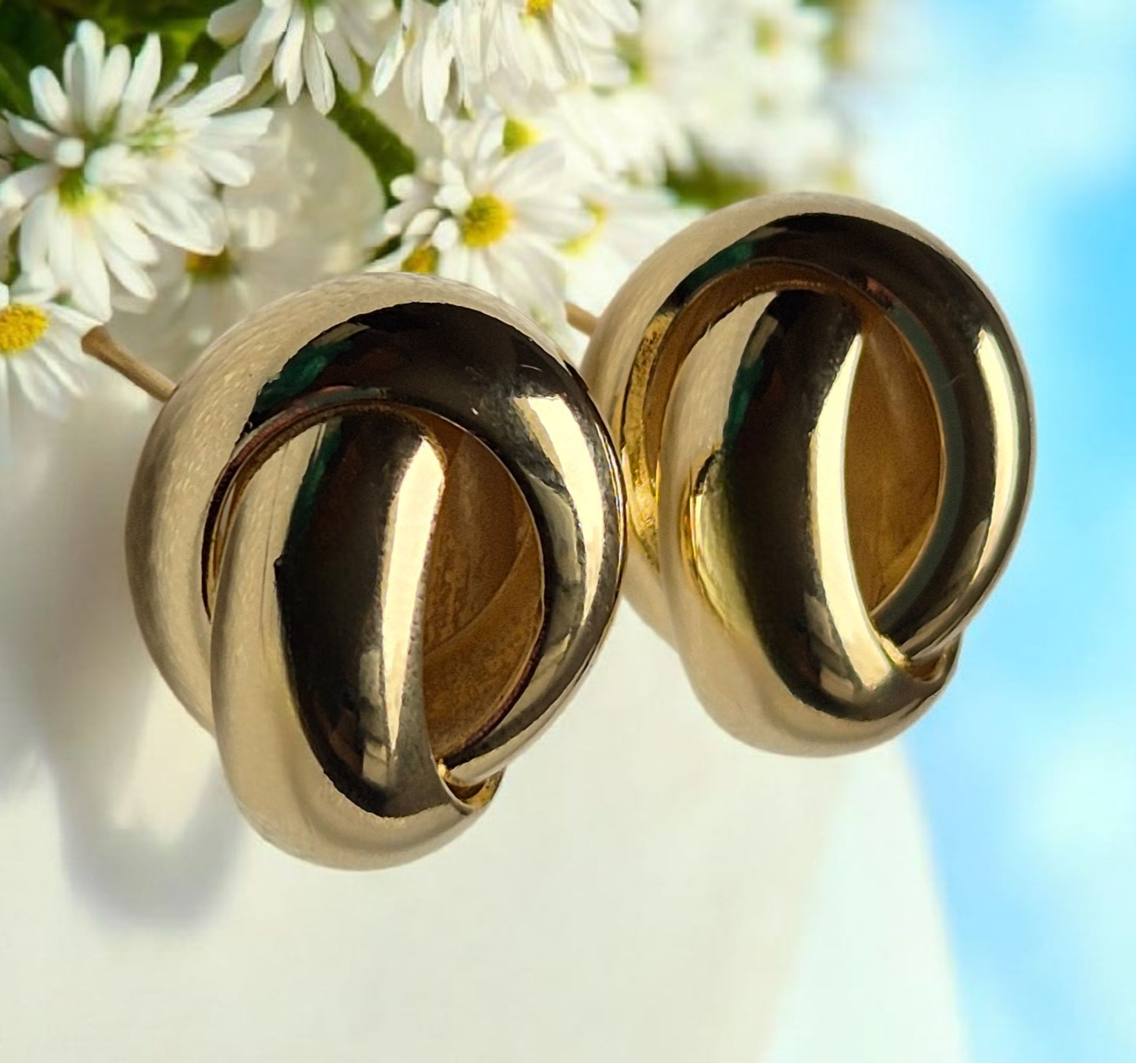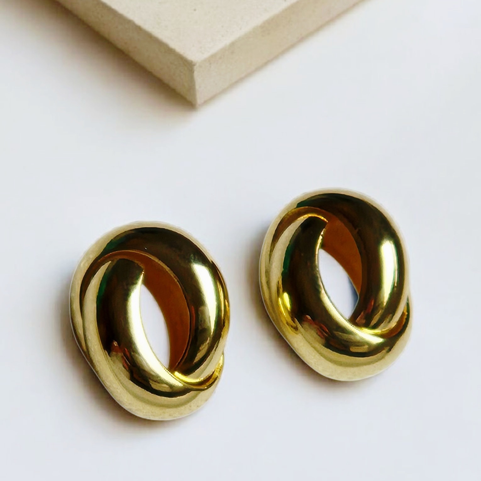 Brinco em formato de nó, banhado a ouro 18K, hipoalergênico.