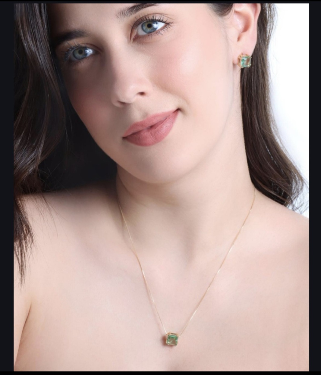 Conjunto com banho de ouro amarelo 18K, com tratamento hipoalergenico, pedra cristal V erde Claro.